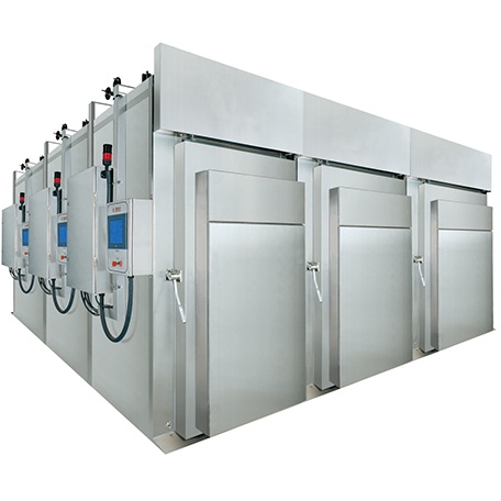 KYX煙熏系統(tǒng)提供肉食品加工過程所需的蒸煮、干燥、發(fā)紅、煙熏、烘烤等功能, 除此之外,還可根據(jù)用戶的不同需求,增加冷熏、燒烤、噴淋、冷卻等選配功能。 適用于香腸、火腿、豬牛羊肉以及家禽類、水產(chǎn)品等多個領(lǐng)域的加工需求。